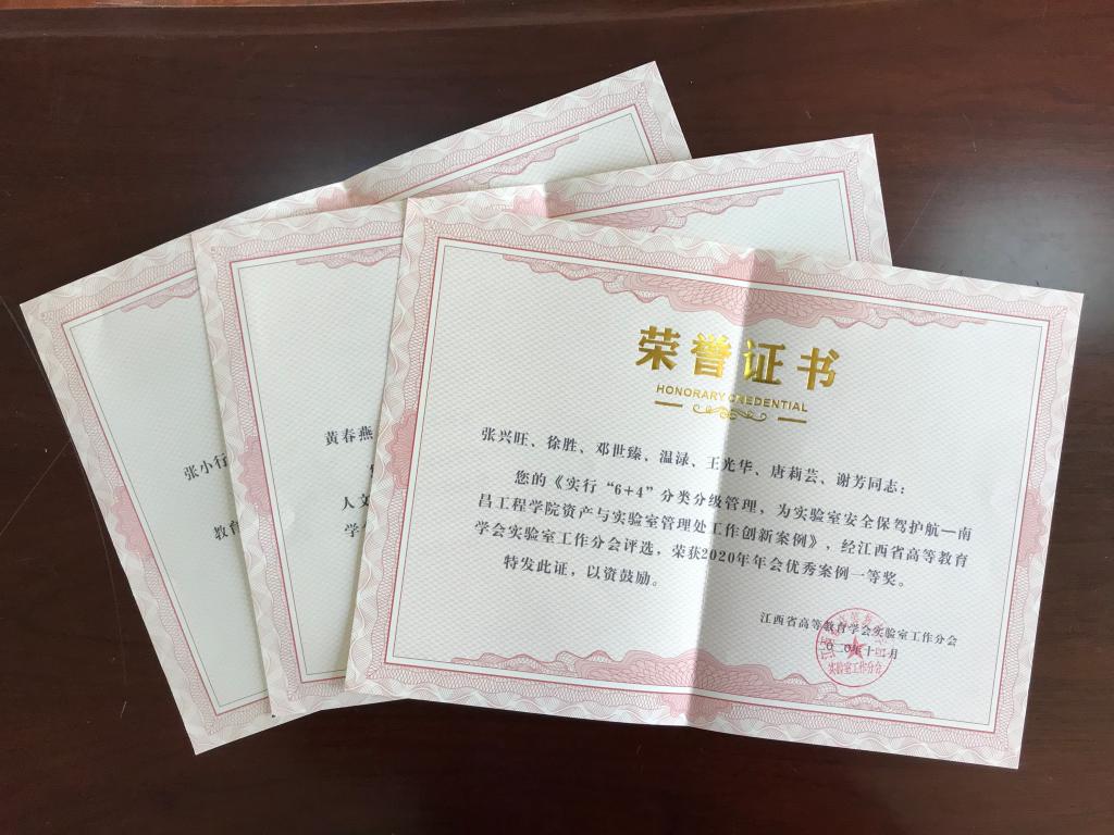 我校资产与实验室管理处资产管理科荣获“先进团队”荣誉称号,资产与实验室管理处张兴旺、徐胜、邓世臻、温渌、王光华、唐莉芸、谢芳申报的《实行“6+4”分类 分级管理,为实验室安全保驾护航》获优秀案例一等奖(全省仅两项),人文与艺术学院黄春燕、刘琴琴申报的《推行管理规范化提升实验室管理水平——南昌工程学院人文与艺术学院实验中心建设与管理》及机械与电气工程学院张小行申报的《南工钳工实习匠心文化的注入》获得优秀案例优秀奖;资产与实验室管理处谢芳、信息工程学院徐晨光、外国语学院卢中等三位教师荣获“先进个人”荣誉称号。