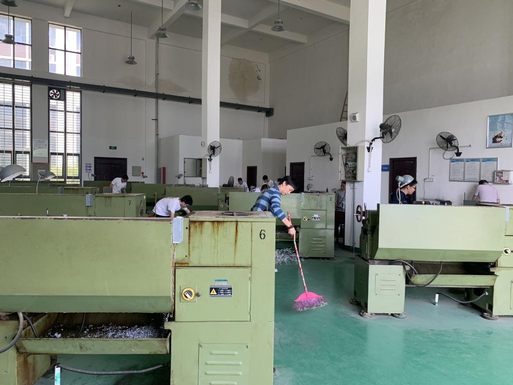启动仪式后,在唐莉芸和王光华老师带领下,实验室劳动实践队前往我校工程训练中心开展了实地体验。在劳动现场,工程训练中心教师张小行、李佩林对队员们进行了现场指导,详细讲解了设备保养维护知识及实验室卫生清理注意事项。在清楚了本次劳动任务和注意事项后,同学们自行分工分组,分别对实验室设备和场地进行了维护和清理。