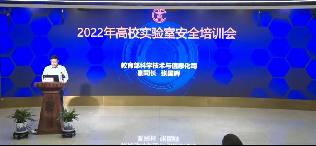 为贯彻落实党中央、国务院关于安全生产工作的系列重要指示精神,保障校园安全稳定,4月19日上午,教育部2022年高校实验室安全培训会在北京召开。会议由教育部科学技术与信息化司和高等教育司主办,高等学校科学研究发展中心承办,以视频会议形式线上举行。国家各部委分管高校实验室安全的负责同志、各省级教育行政部门、全国高校参加。副校长张兴旺、资产与实验室管理处全体成员、各学院(部)分管实验室工作的领导、实验技术人员和相关教师近100人参加了线上视频会议。